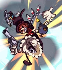 菲莉娅在《骷髅女孩》里算是名义上的女主角,不过像玛丽、帕娜索、瓦伦汀、双形和潘薇儿这些角色,戏份反而比她多不少。这或许是因为游戏的多数宣传物料和海报之类的,都把她当作核心元素来用。