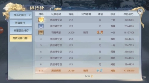 五、竞技场排行榜