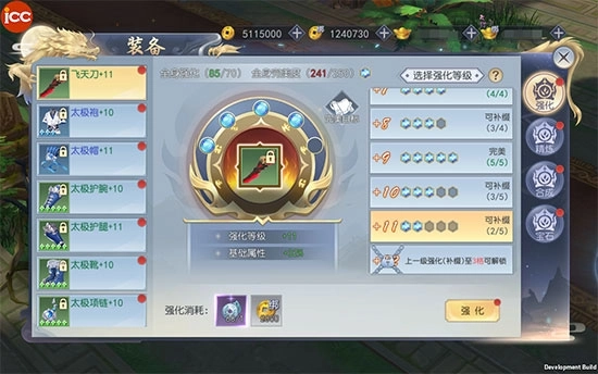 装备等级提升可强化、精炼等级也随之提升。