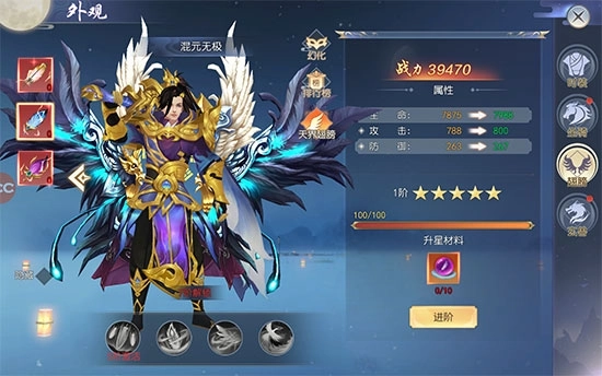 当翅膀的星级达到满星时,就能够进行进阶操作;进阶完成后,不仅会解锁全新的翅膀外观,还能获得新的翅膀技能。