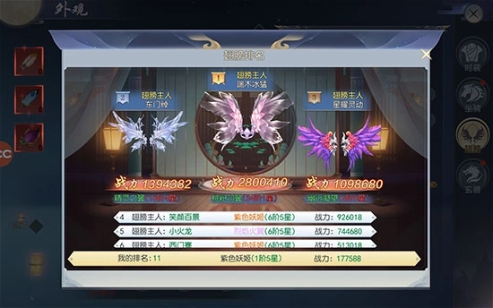 翅膀排行榜可查看当前其他玩家翅膀升阶情况。