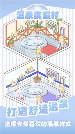 3、这是一款模拟经营放置类游戏,玩家需要为客人们准备种类丰富的温泉水,更换独具特色的浴池,布置出温馨舒适的客房。