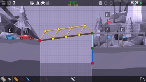 4、除此之外也会有其他要素会前来考验玩家,让这款游戏变得相当具挑战性,也进而吸引了不少奇才前来尝试,打造出相当荒谬或有趣的桥。
