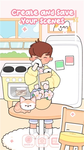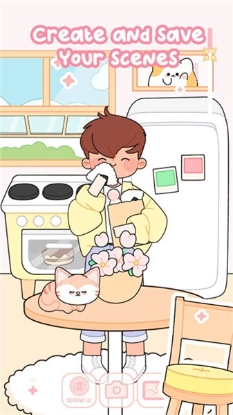 3、除了娃娃本身,玩家还能够为自己的娃娃小屋布置场景,自由摆放家具;也可以创造可爱的宠物来陪伴娃娃。