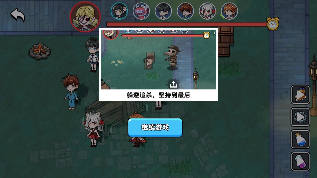7、要是被抓住了就得赶紧点击挣脱,同伴被抓的时候也得去帮忙营救,不然人数越来越少的话,就会更容易被抓住。
