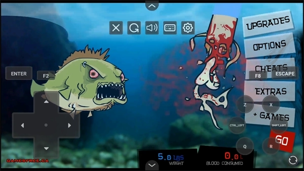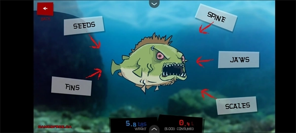 4、游戏的具体玩法非常简单就是控制食人鱼去攻击任何猎物,使得食人鱼饱餐一顿。