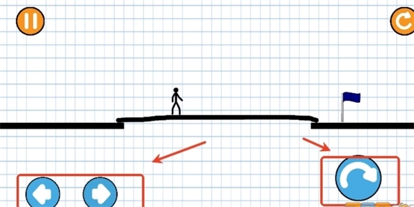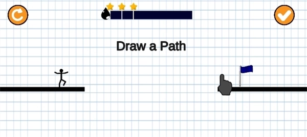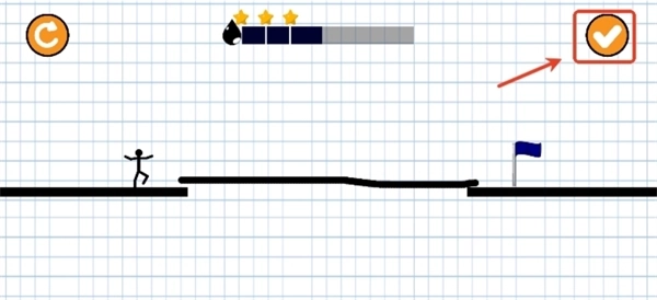 2、在游戏的第一关中,玩家需通过点击屏幕绘制出一条长线,以此协助火柴人跨越障碍。需要注意的是,笔画的长度是有限制的,并且画出的线越短,在该关卡中能获得的星星数量就越多。