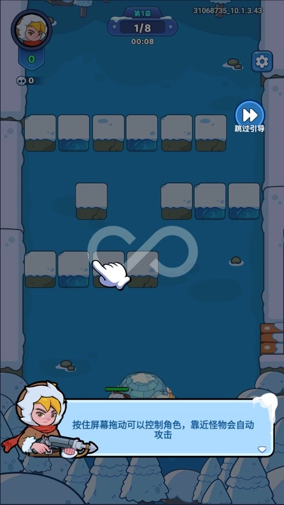 2、按住屏幕拖动可以控制角色,靠近怪物会自动攻击。