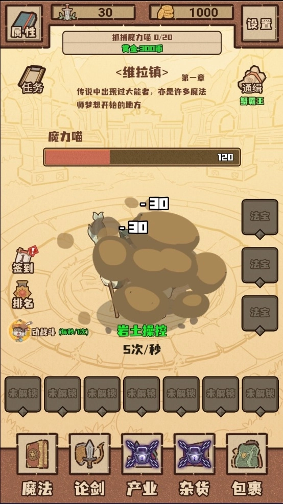 游戏融合战力成长与资源经营——收集铜币升级魔法技能,解锁“水系巨浪”“火系烈焰风暴”等华丽招式;在杂货铺购置多样法宝,如“焚天炉”“乾坤袋”,搭配攻击、辅助、资源增益等策略组合。
