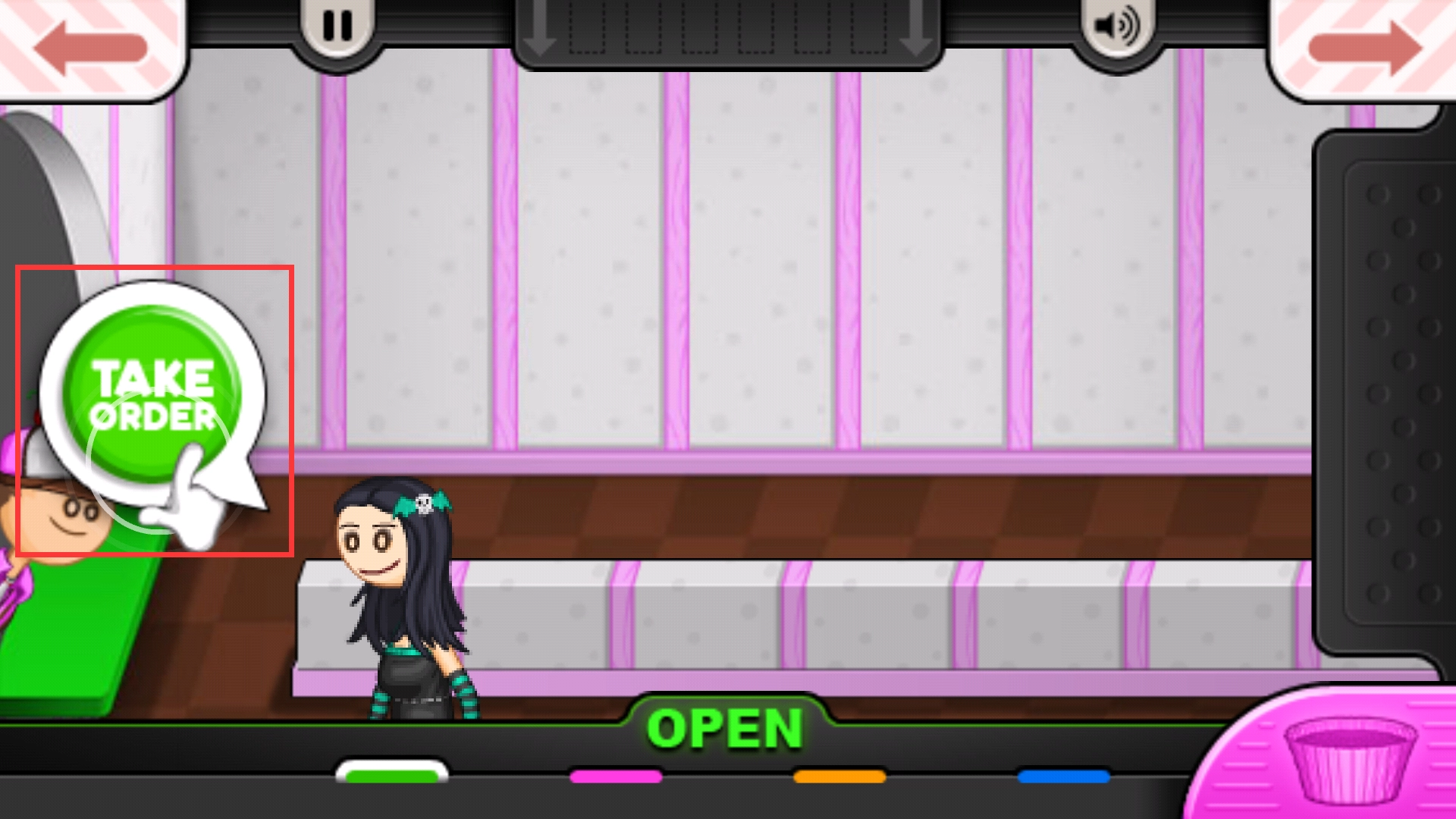 5、教程结束后,刚好有一位顾客前来,我们需要点击“TAKE ORDER”按钮来接收她的点餐需求
