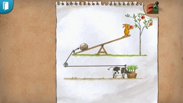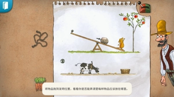 4、玩家只需把绳索和萝卜摆放到正确位置,就能触发机关。