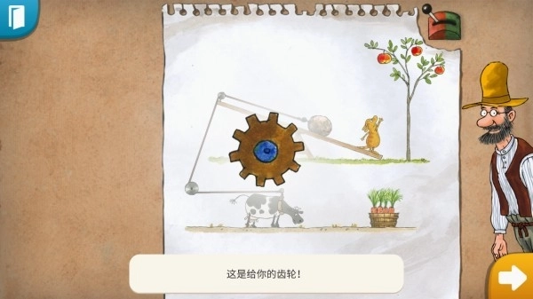 3、每一关都设有不同的主题,就像下面这张图展示的那样,玩家要协助马克尔顺利地摘到苹果。