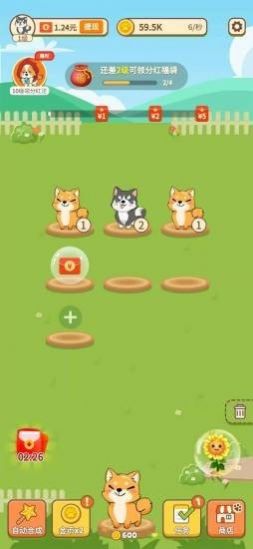 玩家可以在游戏中饲养各种不同的可爱小狗,每一种小狗都拥有不同的造型和能力,你可以通过合成来提升等级,这样可以为你带来更多的财富。