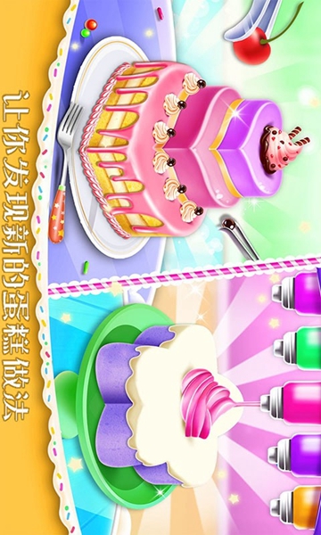 玩家在玩的时候可以创造出专属于自己的美丽的蛋糕。用户可以通过不同的食材搭配打造专属蛋糕.。