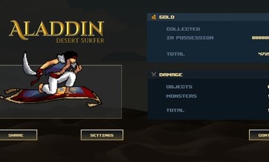 阿拉丁沙漠冲浪者是一款以沙漠为背景,以冲浪为主题的游戏。玩家在沙漠里体验精彩的冲浪,按照一定的任务完成任务,获得金币和奖励。玩家可使用金币来购买新的板材、鞋和更多的装备,开启多种难度的任务,挑战沙漠中的山谷,竞技场,还有悬崖。玩家通过精准控制,逃离夹住自己的浪潮,朝着激流冲刺,利用阿拉丁沙漠中的地形障碍,尽情地尝试这款游戏中的无尽冲浪之旅。
