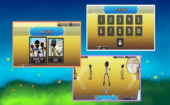 游戏中有非常多的火柴人的形象和装扮供玩家们选择,玩家可以使用武器战斗;