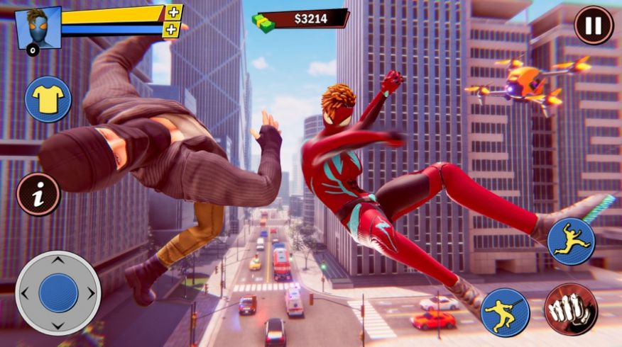 飞行绳索超级英雄战斗机是一款玩法非常自由的动作冒险类游戏,玩家能够化身全新的超级英雄战士,在城市之中完全更多精彩的冒险,这个游戏能够通过庞大立体切非常逼真的城市冒险挑战,让玩家感受其中刺激冒险的过程,借助绳索的帮助,玩家可以尽情完成更多惩奸除恶的挑战。