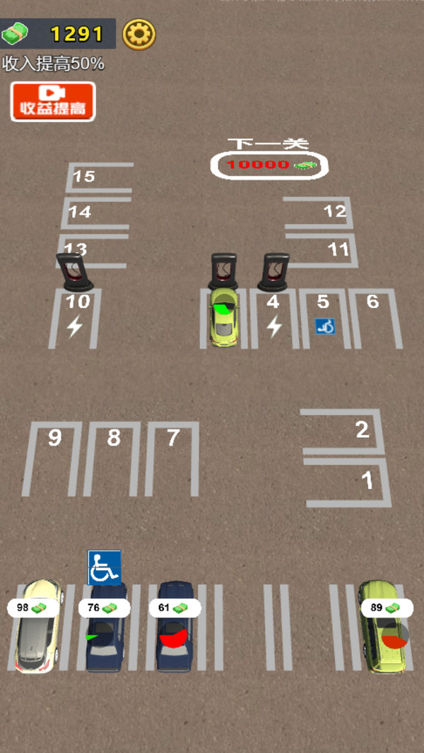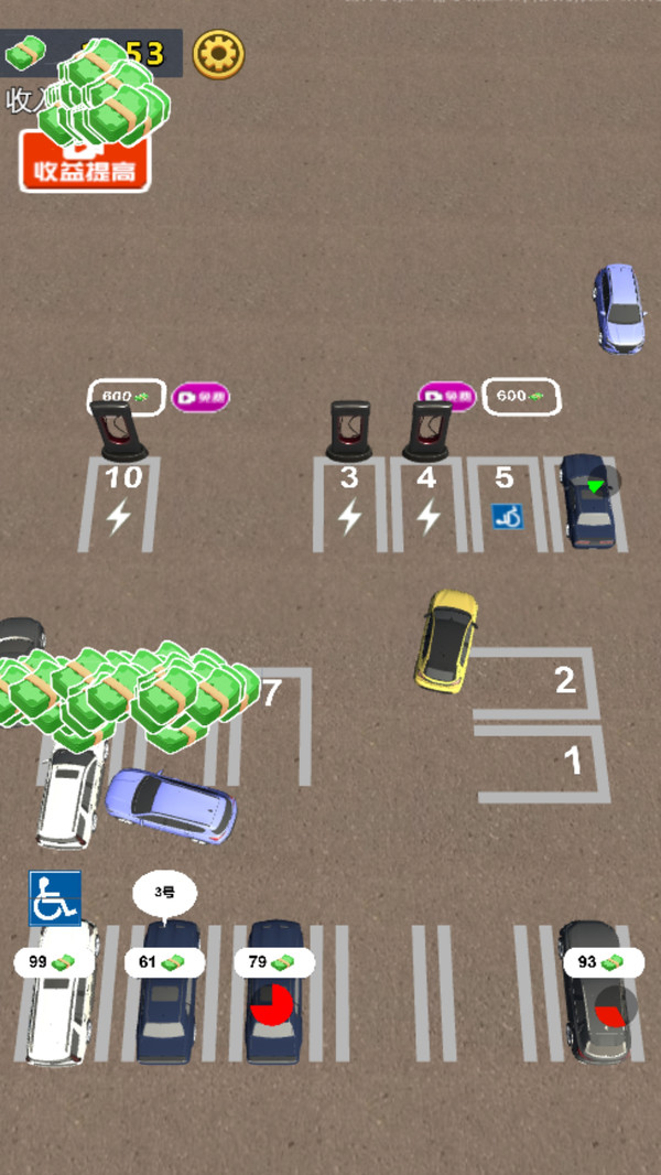 2、实时停车,需要玩家一次次的让车辆慢慢的进行停车场,进一步的收入停车的费用。