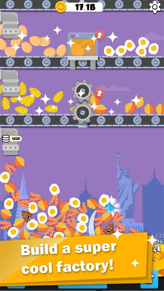 3、通过不断生产可获得金币与经验,提升等级,解锁更多新设备,并最终打造自己的超级工厂。