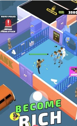 1、银行悍匪是一款真实而又刺激的射击游戏,游戏画面流畅,并且效果惊艳。