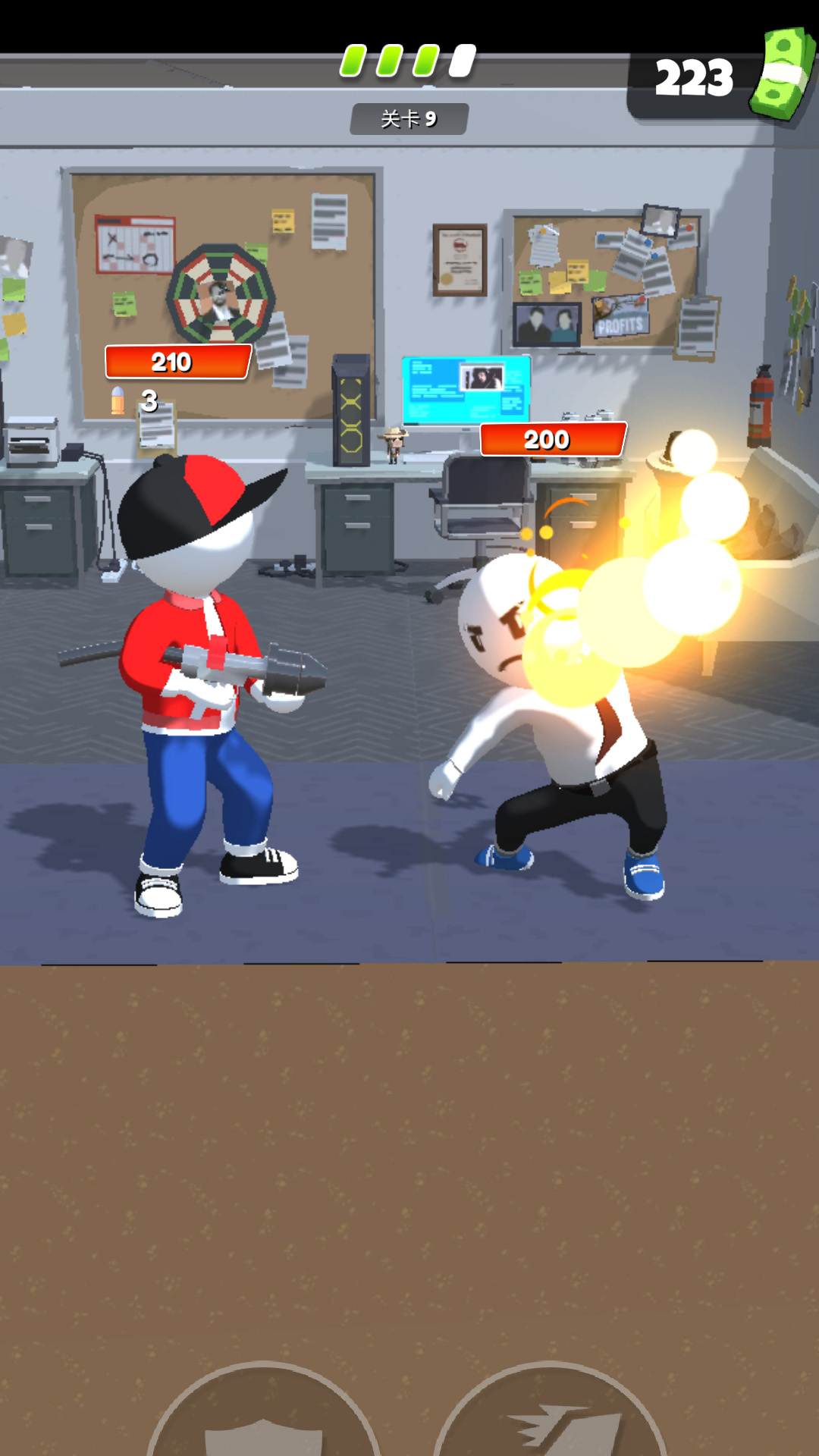 任务开始后会在屏幕的上边出现两个血条,一个是你,另一个是对方。