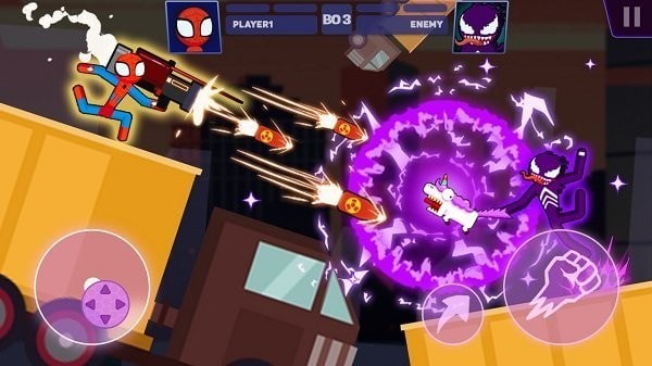 3、有趣的火柴杆动作格斗游戏,玩家在游戏中可以选择喜欢的火柴杆角色来参与战斗,更独特的角色给你更多的战斗乐趣。
