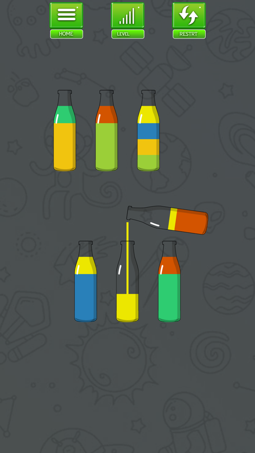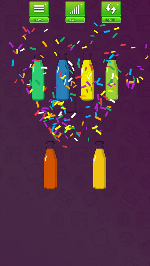 1、简单的画面效果,各种瓶子的外观相当精美,视觉享受非常舒服,带来极佳的体验。
