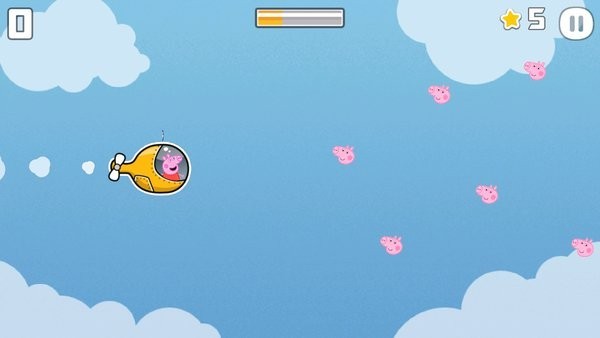 游戏中,玩家将扮演小猪佩奇,通过虚拟摇杆操控。开着直升机收集金币,躲避各种障碍物的大冒险!谁坚持的时间最长,得到的分数最多,就是最后的胜利者!