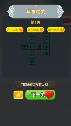 1.游戏中有很多关卡,每个关卡都是不同的成语。