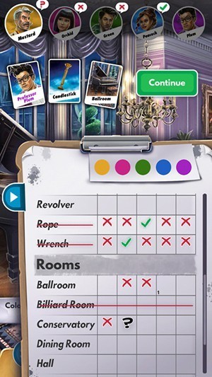 2、游戏开始时,三张各代表凶手、凶器及行凶房间的卡被放在一个纸信封中,其馀卡片分发给玩家。