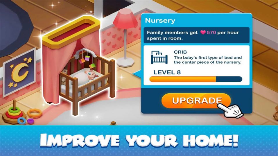 1、主题鲜明的游戏界面,让你身临其境的感受自己的家庭生活;