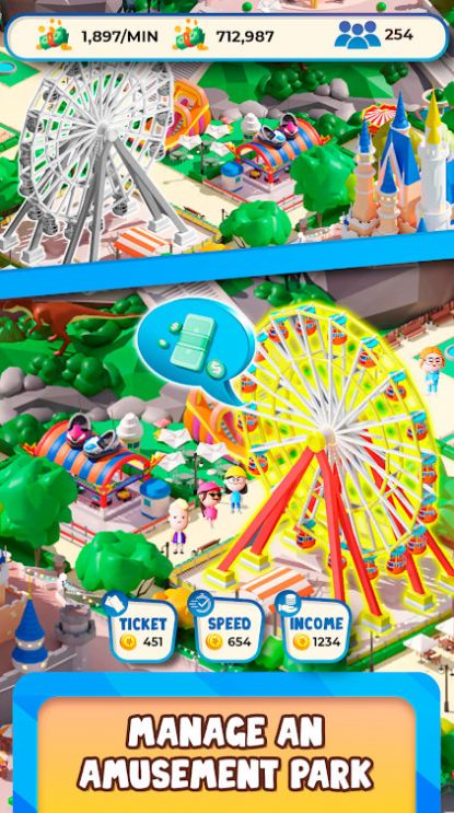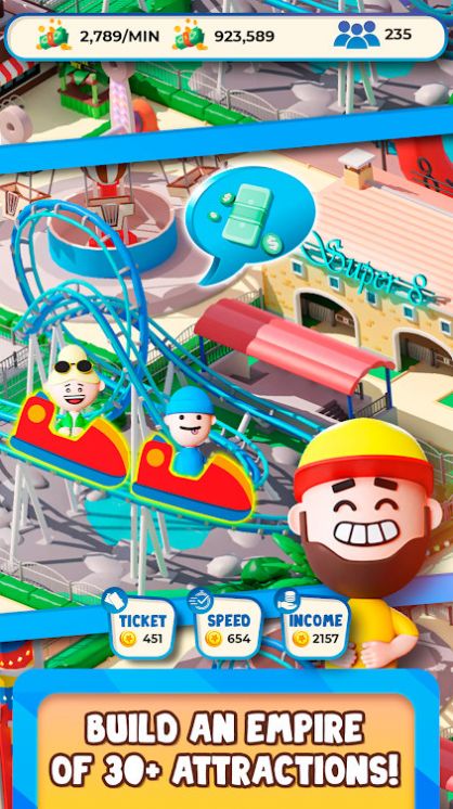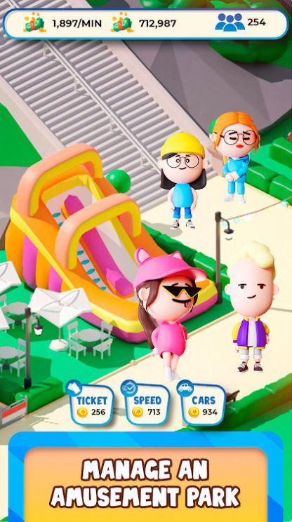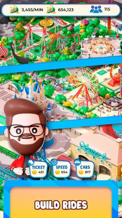 空闲公园帝国大亨是一款经营类游戏,玩家需要建造和运营自己的主题公园。游戏中玩家可以选择不同的地图和挑战,从而获取不同的游戏体验。玩家需要设计和布置游乐设施、食品摊位、娱乐场所和其他吸引游客的设施,同时管理员工和财务,以确保公园的经营良好。