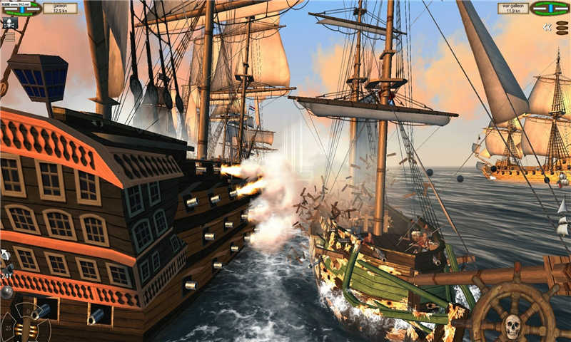 《航海王:海盗之战》又名《海盗:加勒比海亨特》是一款制作精良的海盗题材的海战战略游戏。游戏中玩家要控制海盗船去各个海域收集物资。用收集回来的物资可以去交易所换取金币升级你的海盗船与其他船开战!