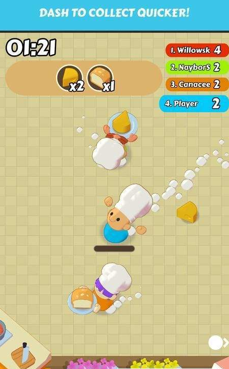 1、接到订单后在大地图上面抢夺食材来完成订单获得分数。