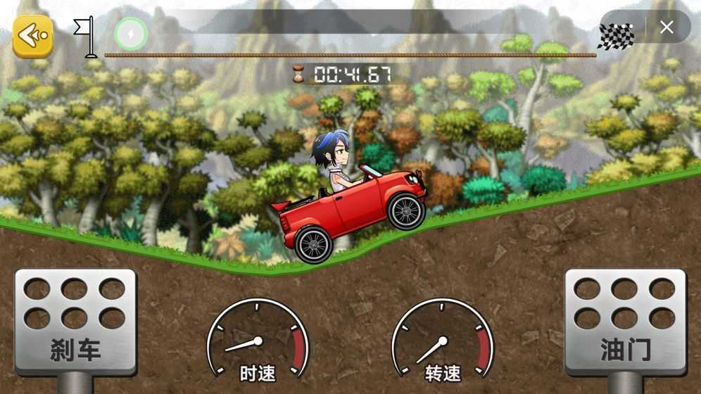 玩家需要驾驶一款赛车跑在山地上,由于山地非常颠簸,需要玩家很好的把握油门和刹车,保证车子就不会翻过来。