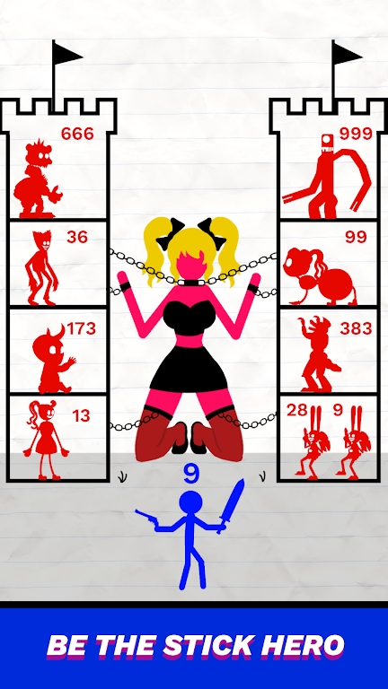 火柴人战斗强大的塔防战争(Stick Battle:Mighty Tower)游戏是一款由多张地图、多个火柴人角色和塔防设施组成的动作塔防游戏。游戏玩法类似于传统的塔防游戏,需要在地图上建造不同类型的防御设施来抵御敌人的攻击,并在游戏中不断升级自己的防御设施,以最终击败敌人。你可以选择各种防御塔,包括狙击手、火箭炮、激光炮、闪电塔等。你还可以使用不同的特殊技能来增强你的防御能力。